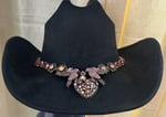 Black Cowboy Hat Pink Crystal Bird & Heart Band