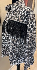 Vintage Leopard Print Denim Black Fringe Jacket Johnny Cash