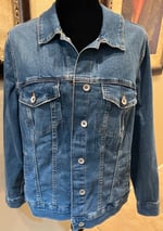 A vintage blue denim jean jacket. Side pockets. Button down front. A vintage Pink Floyd concert T-shirt is on the back. Size XL.